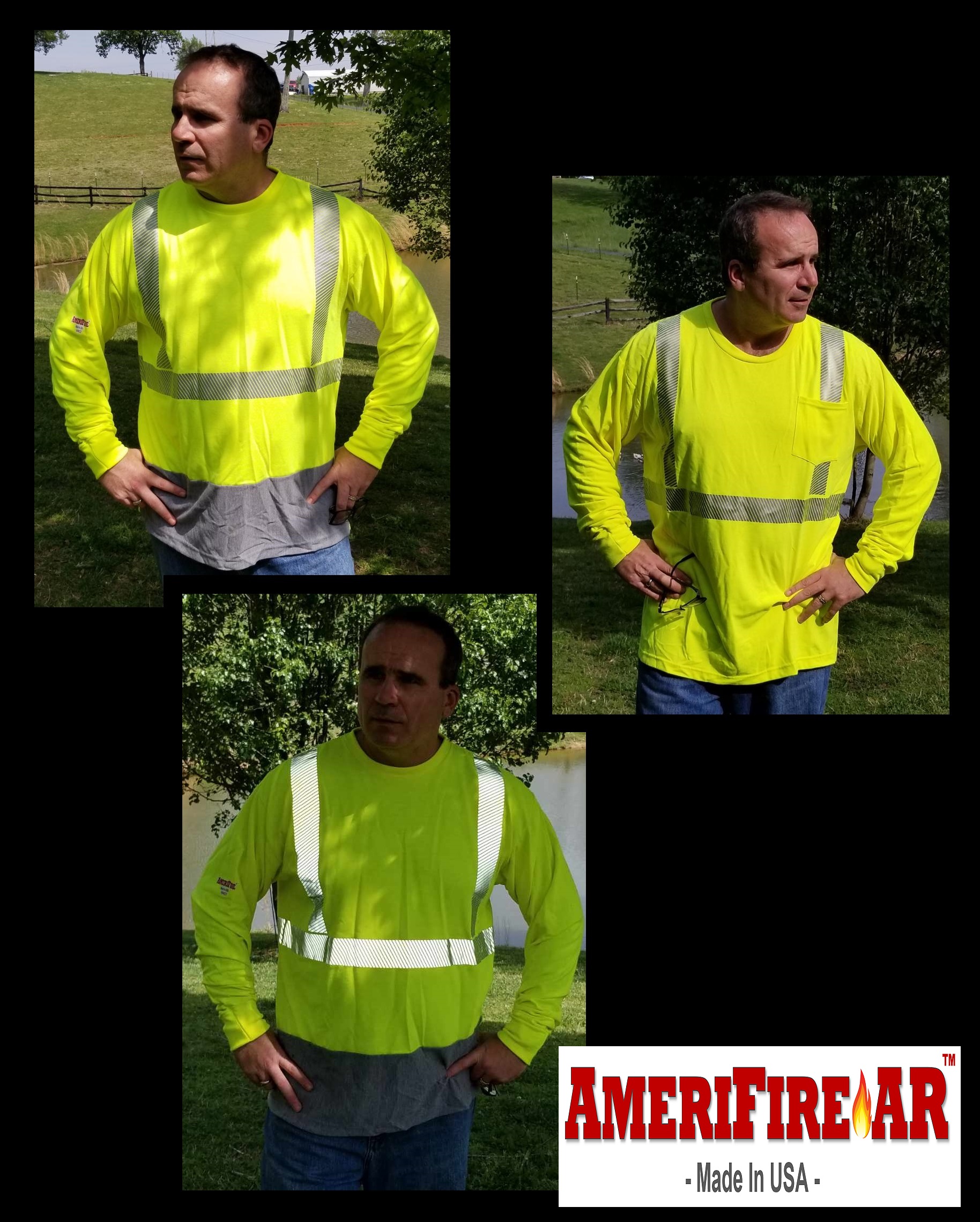 Link: AmeriFire-AR AMFR-HVYT-LS Hi Vis Arc Flash FR Class 2 Long Sleeve T-Shirt, Hi Vis Yellow, Made in US